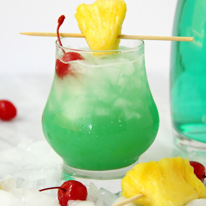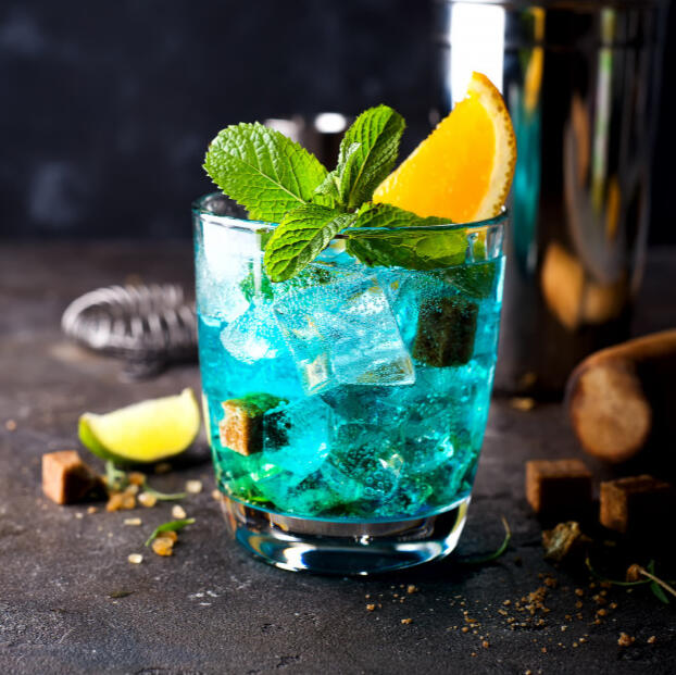 Refreshing mint meets tropical flavors in our popular showgirl who's full of zest. White rum, blue curacao, club soda, simple syrup, orange juice, and a splash of creme de menthe accented with a touch of mint will leave you refreshed and ready to party 'til long after sundown.