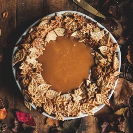 A smooth, decadent, absolutely rich homemade pumpkin pie, following a secret recipe, carried from foreign shores. Delicately crafted cinnamon cookies decorate the outer lining, while a rich, special brand of caramel crowns the top, with dollops of maple syrup infused into the bake.
