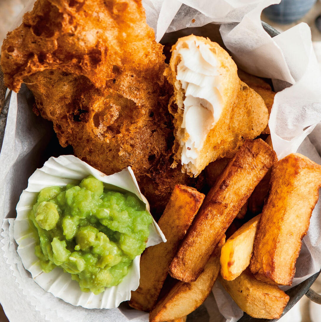 Flaky, glistening, moist haddock fish wrapped in a crunchy beer batter crust with a side of double-cooked crisp chips to seal the deal. Selected from handpicked Noscean popotoes, and a rich, fragrant beer to boot, this dish is served with either a homemade tartar sauce, or rich, mushy peas.