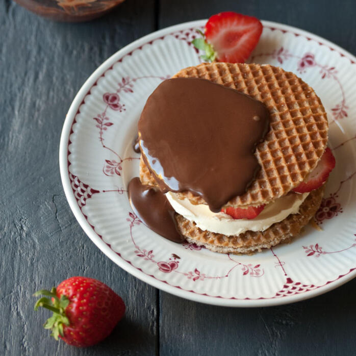 Though more of a snack, this sweet will tackle your tastebuds head-on. Between two crunchy stroopwafles lies a bed of velvety-smooth mascarpone cheese, in which four sliced strawberries make their nest. This devilish delight is covered with a soft layer of molten chocolate, giving weight to a normally airy dessert.