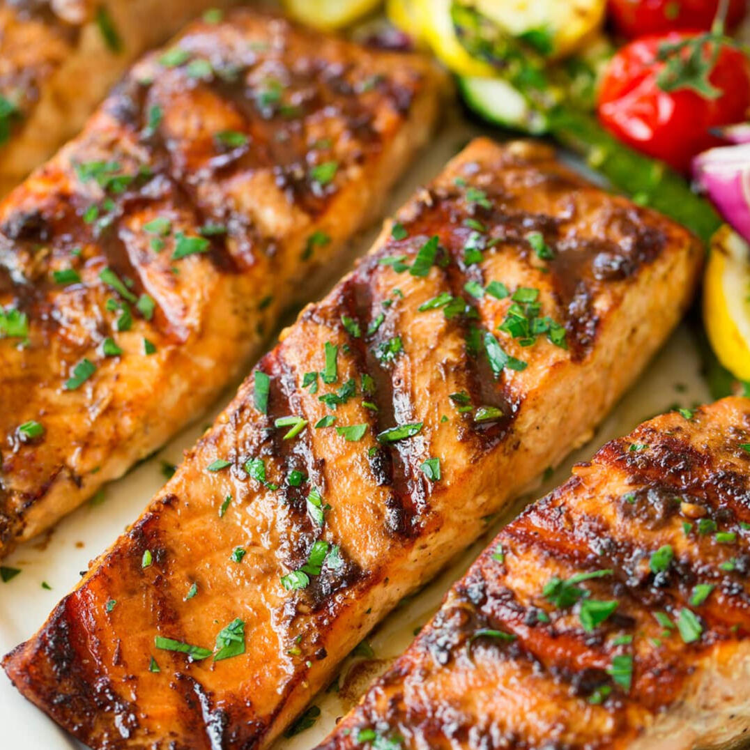 Just kissed with a butter-basted crust, this grilled, honey-glazed salmon is dressed to impress. A smooth sauce of reduced white wine, soft cream, butter and a hint of vanilla enrich the dish browned fish from underneath, while a spread of finely chopped garlic and green onions is peppered atop of it. Finalized with a few squirts of lemon, the dish comes to you packing fresh, light flavours. Garnished with grilled cherry tomatoes, cucumber and boiled small popotoes.